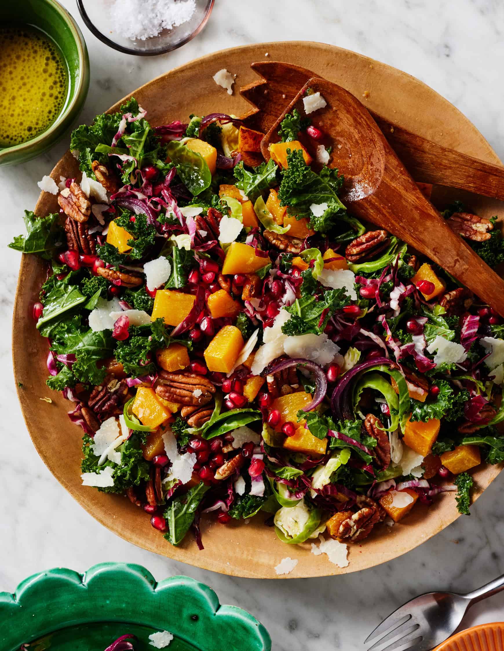 Brighten up your holiday table with this Christmas salad! It's fresh and colorful, made with juicy pomegranates, roasted squash, and winter greens.