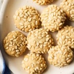 These pignoli cookies are a new addition to my holiday cookie lineup, and I already can’t get enough of them. A toasty, crunchy pine nut crust surrounds the chewy cookies, which are bursting with almond flavor (my favorite at Christmastime). They’re easy to make with 7 ingredients, but I think they’d be the star of any holiday cookie plate.
