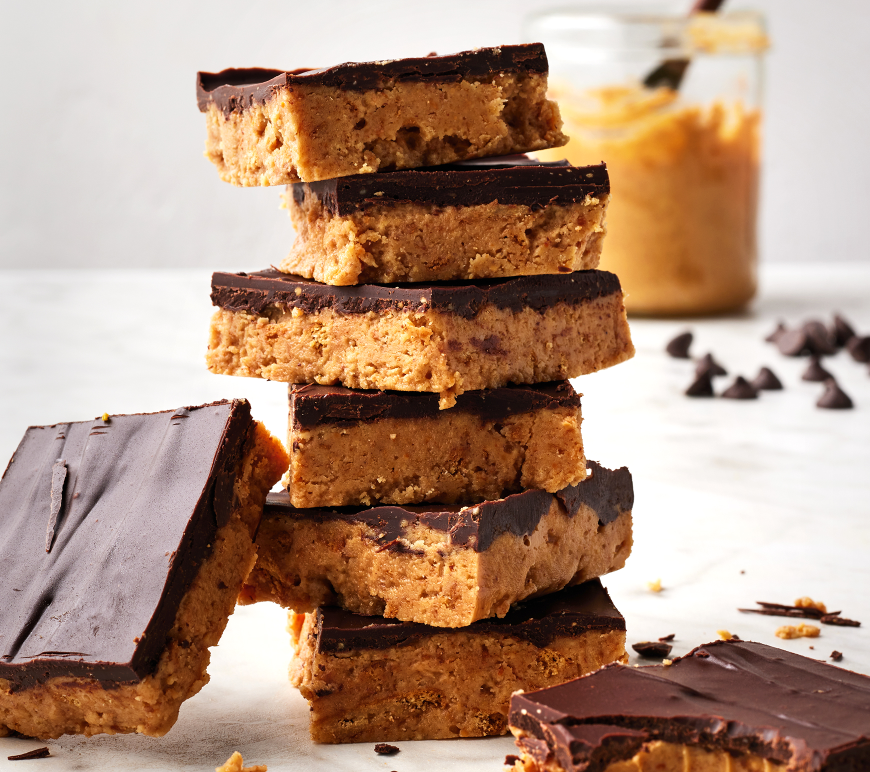 - They taste like Reese’s peanut butter cups. With a fudgy peanut butter base and crisp chocolate topping, these delicious bars are like the best peanut butter cups you’ve ever tasted. Ollie might feel differently, but I don’t need any Halloween candy when I have a stash of these bars in the fridge!