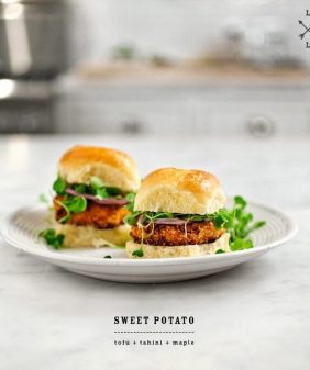 Sweet Potato Veggie Burgers- Roasted Broccoli & Cranberry Salad