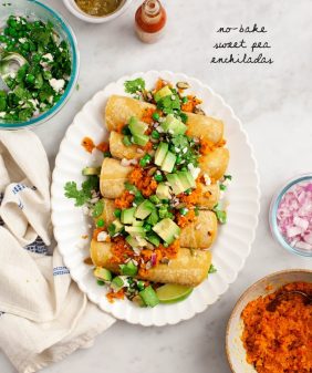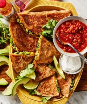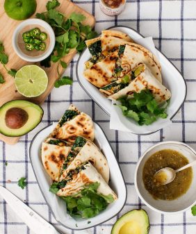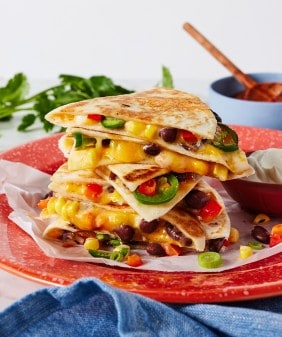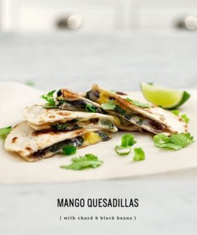Poblano “Crema” Enchiladas- Mango & Black Bean Quesadillas