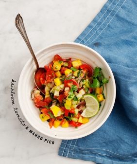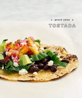 Roasted Tomato Brown Rice Pasta- Peach Salsa Tostadas