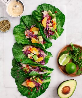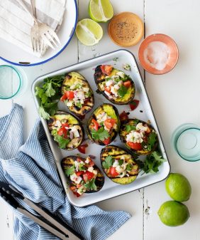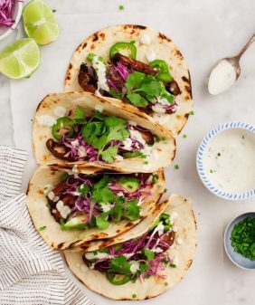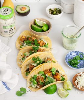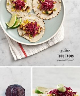 Grilled Tofu Tacos with Avocado Cashew Cream- Summer Squash & Corn Orzo