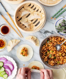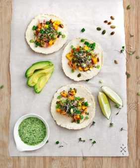 Miso-Maple Sweet Potato Tacos- Edamame Dumplings