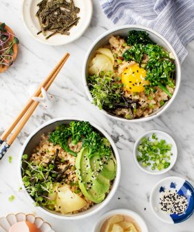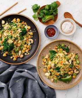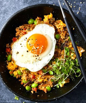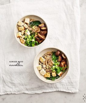 Mushroom & Edamame Quinoa Fried “Rice”- Ginger Miso Eggplant Noodles