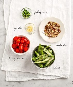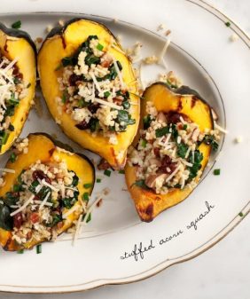 Quinoa Stuffed Acorn Squash- Spicy Seared Okra