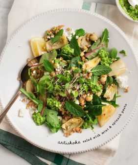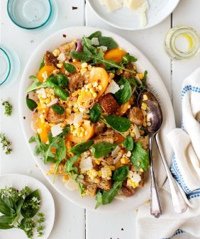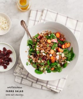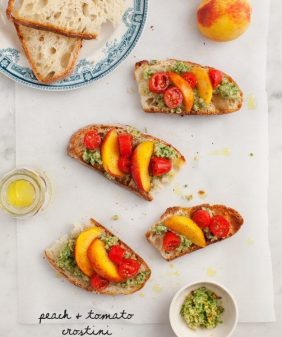 Peach & Pesto Crostini- Fig & Arugula Wheat Berry Salad