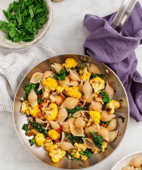 - Pasta with Roasted Cauliflower, Feta & Sun Dried Tomatoes