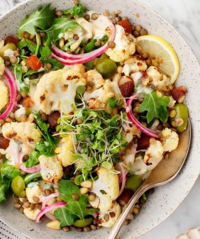 Roasted Cauliflower Hazelnut Salad- Tahini Zucchini Noodles