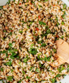Farro Salad with Kale Pesto- Parmigiano & Fig Grilled Cheese