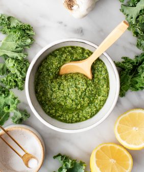 Arugula Scramble with Kale Pesto