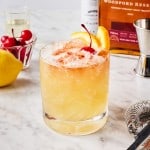 • Bourbon – In theory, you could use any type of whiskey here (i.e., rye, scotch), but bourbon is a classic choice. Its sweet, oaky notes play nicely with the bright lemon. Our favorite brands are Woodford Reserve, Bulleit, and Cody Road.